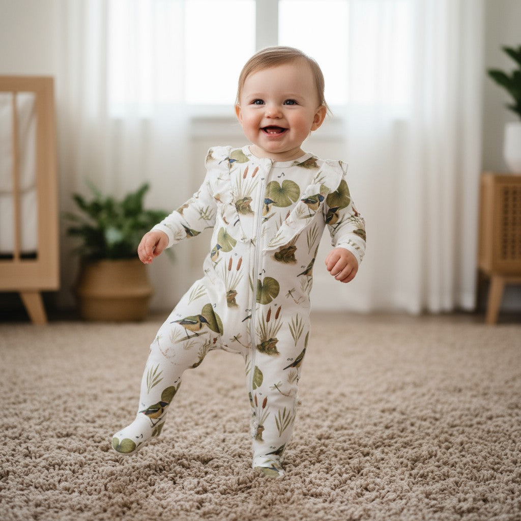 El estampado exclusivo celebra la fauna chilena, con ilustraciones inspiradas en especies locales que conectan a tu bebé con la naturaleza desde sus primeros días.