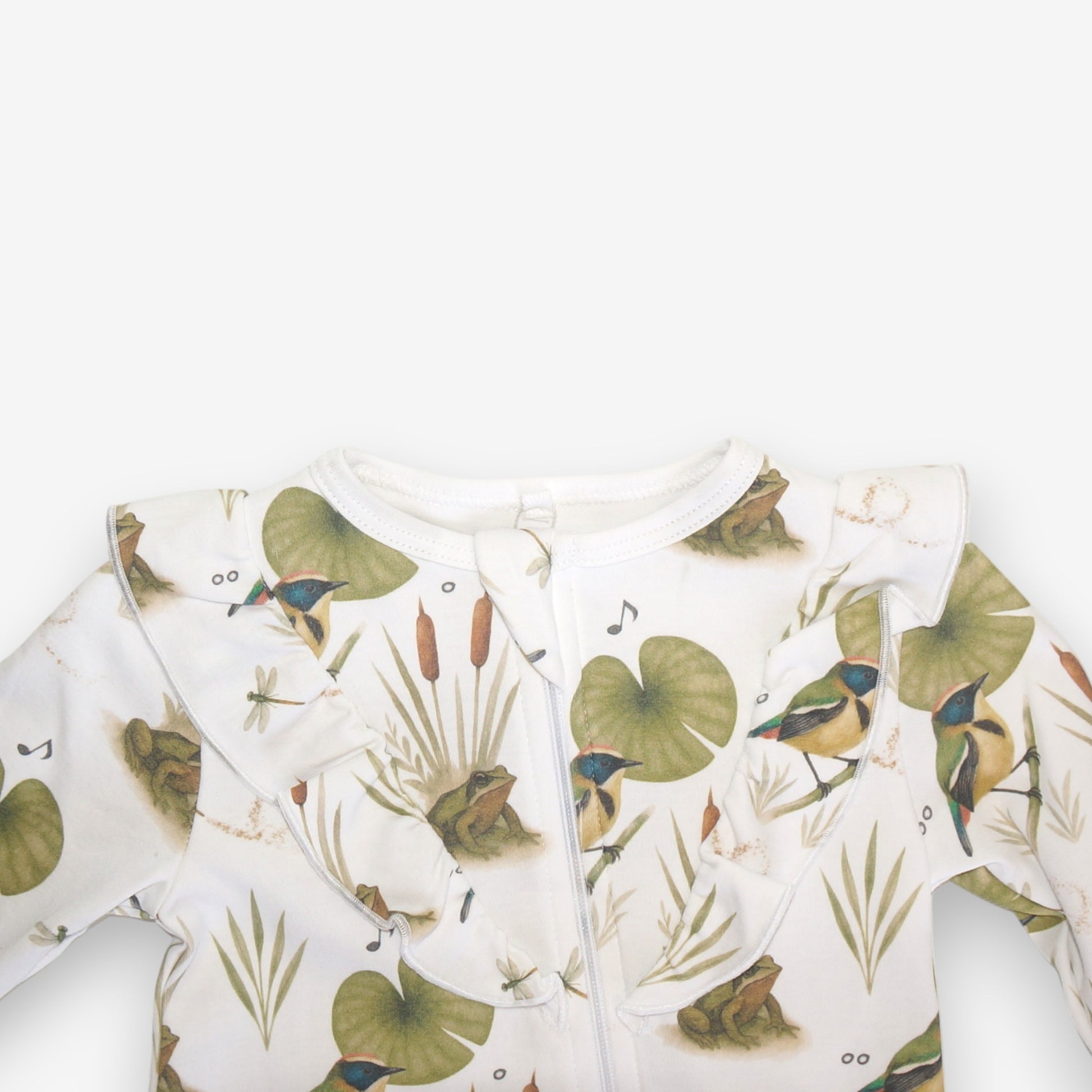 Enterito Largo Niña 100% Algodón Pima Vuelitos Frontales – Siete Colores y Ranita de Darwin
