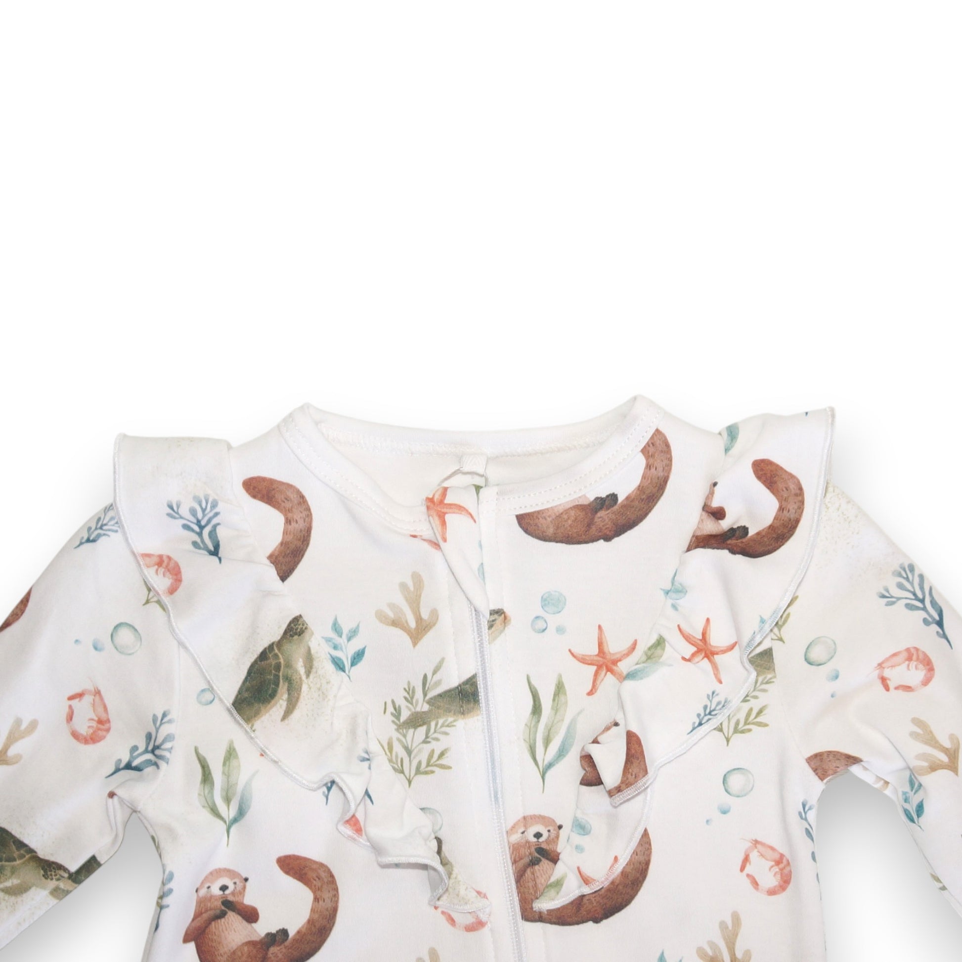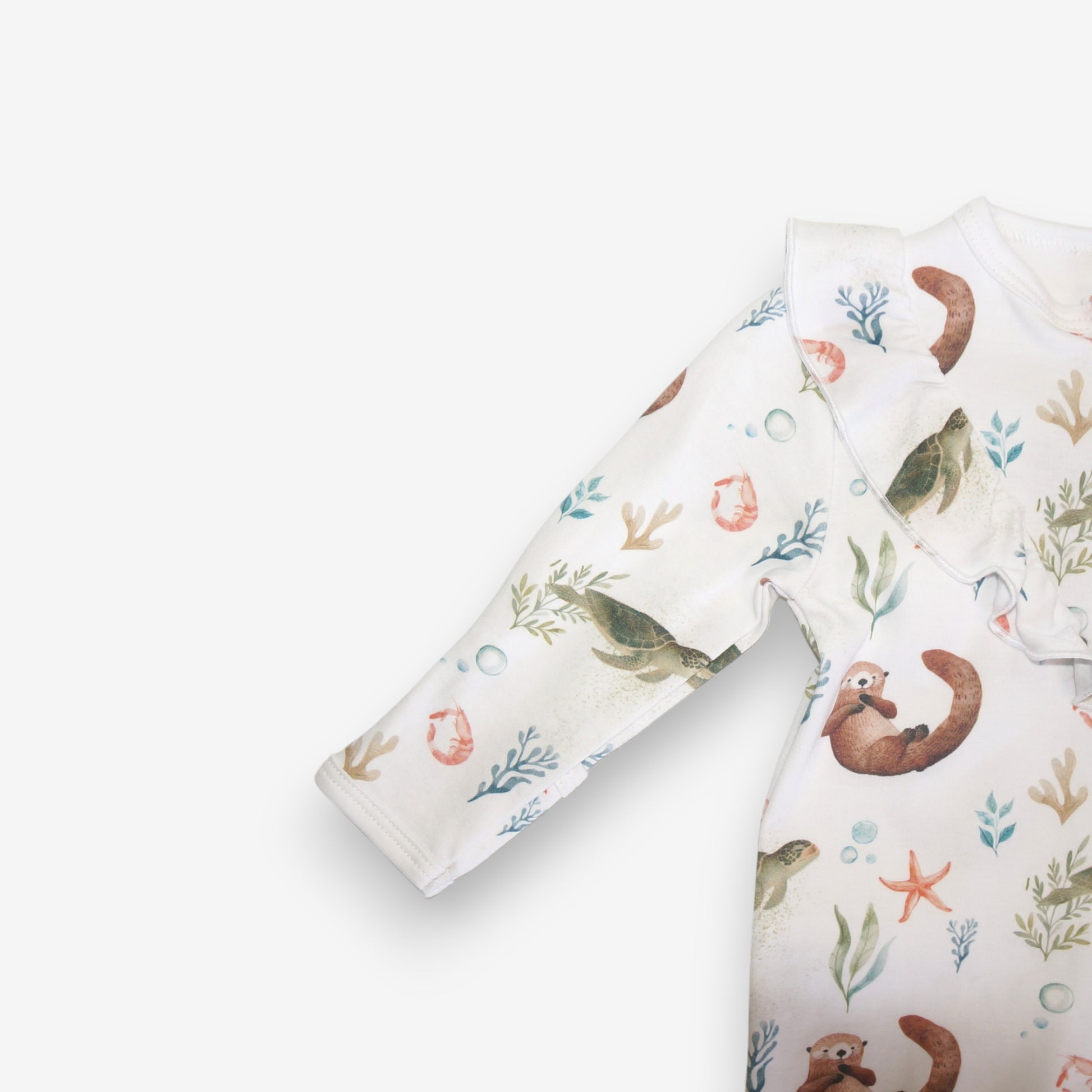 Enterito Largo Niña 100% Algodón Pima Vuelitos Frontales – Tortuga y Chungungo