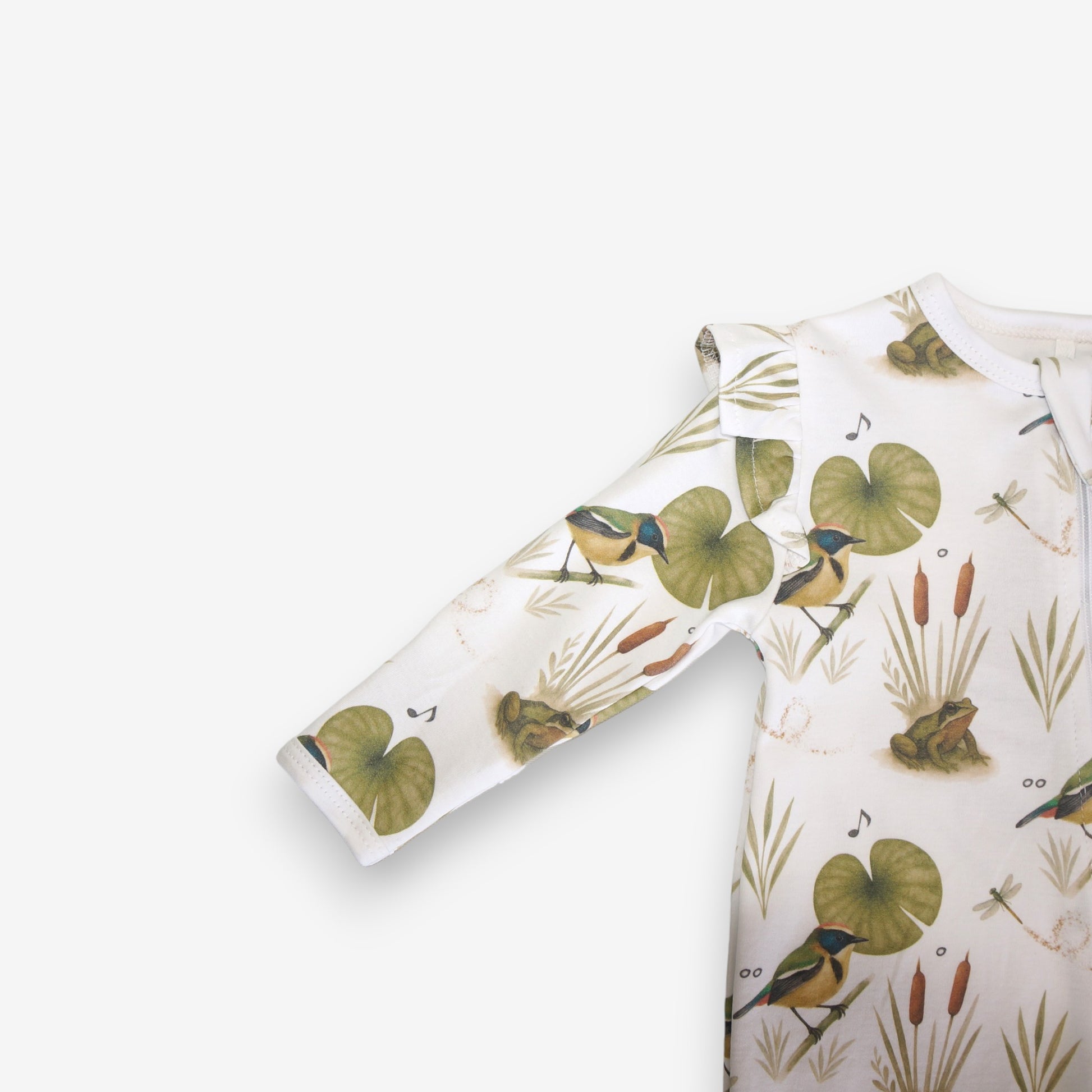 Enterito Largo Niña 100% Algodón Pima Vuelitos Laterales – Siete Colores y Ranita de Darwin