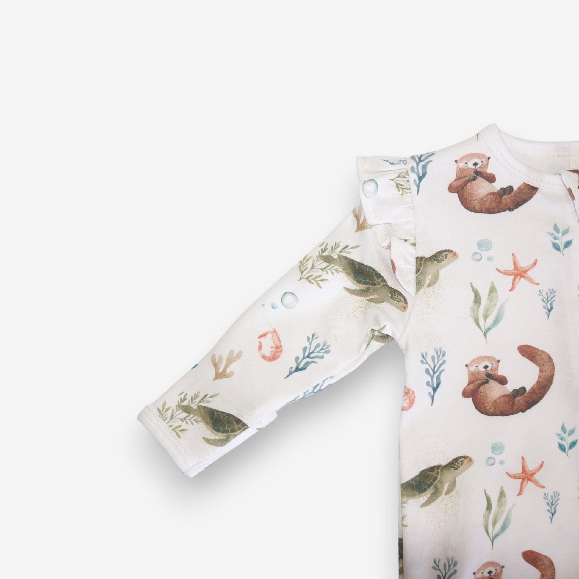 Enterito Largo Niña 100% Algodón Pima Vuelitos Laterales – Tortuga y Chungungo