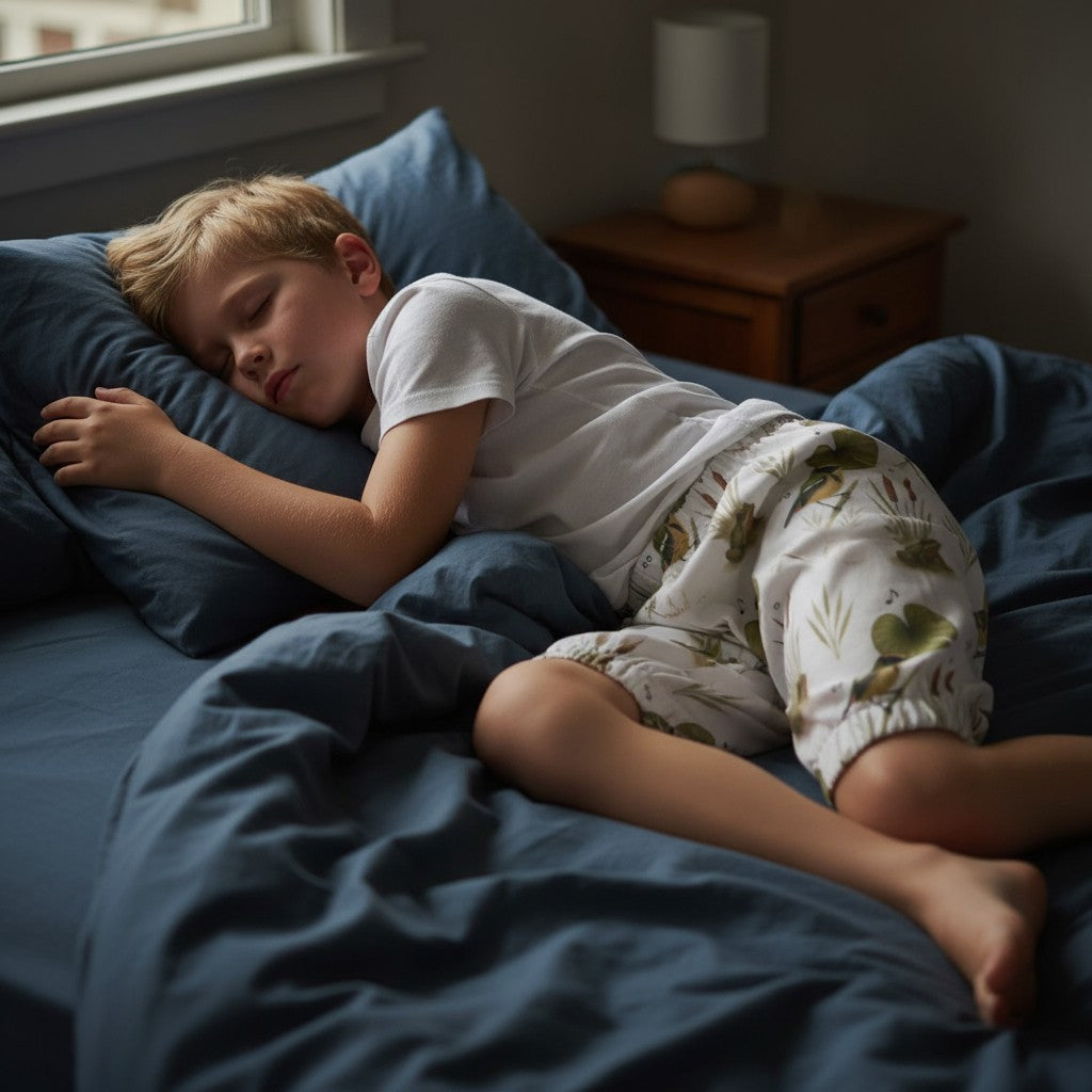 Los Pipijamas en versión bermuda son pijamas de entrenamiento diseñados para acompañar el proceso de dejar el pañal nocturno o evitar filtraciones. Retienen hasta 100 ml de orina, permitiendo al niño o niña sentir la humedad sin mojar la cama.