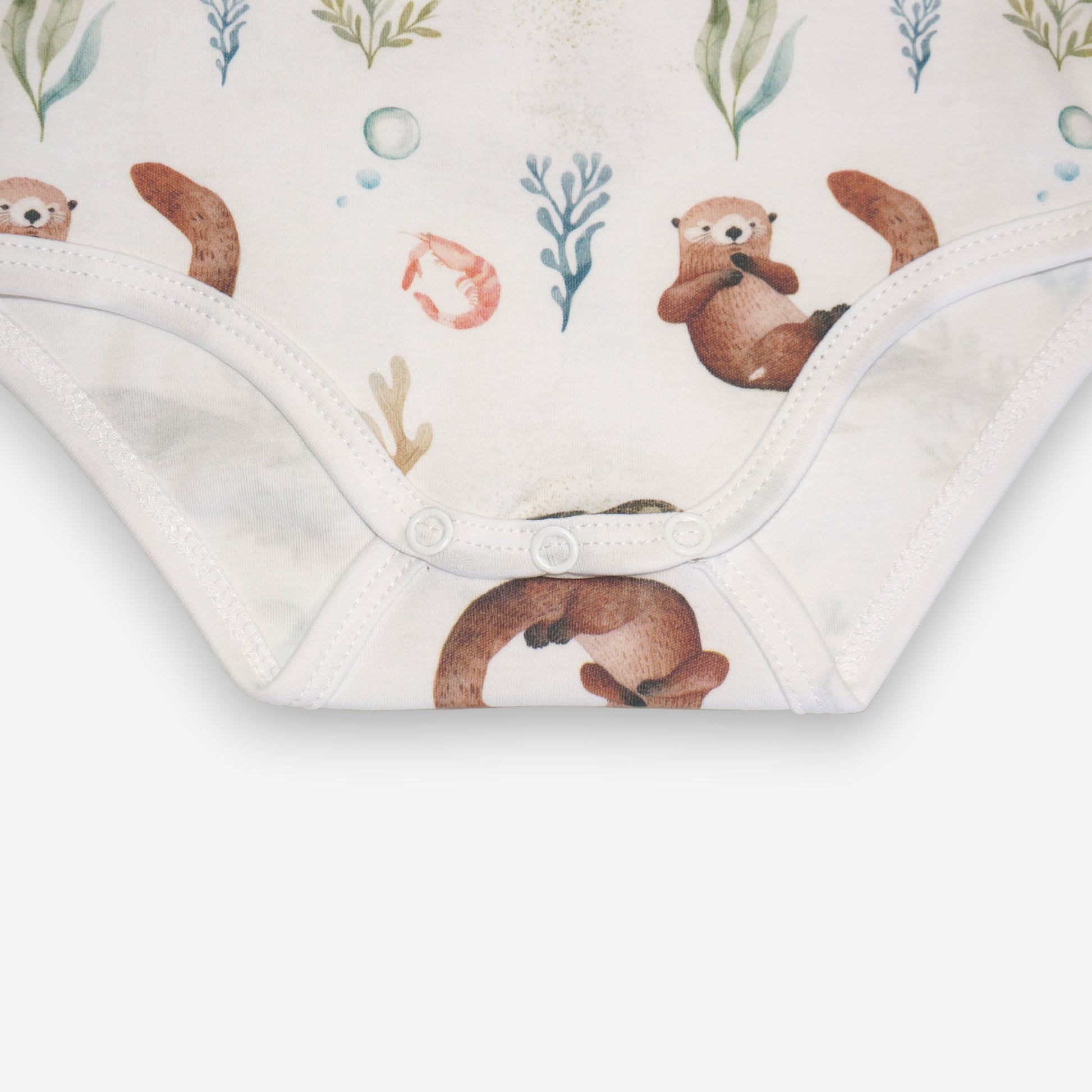 Cuenta con cuello con apertura para vestir y sacar fácilmente, y tres broches metálicos a presión en la parte inferior para cambios de pañal rápidos.